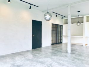 壁や床をグレーに統一しスタジオのような雰囲気に仕上がっています。