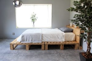 ホームセンターの木材を使い、改装した部屋に家具を設置。